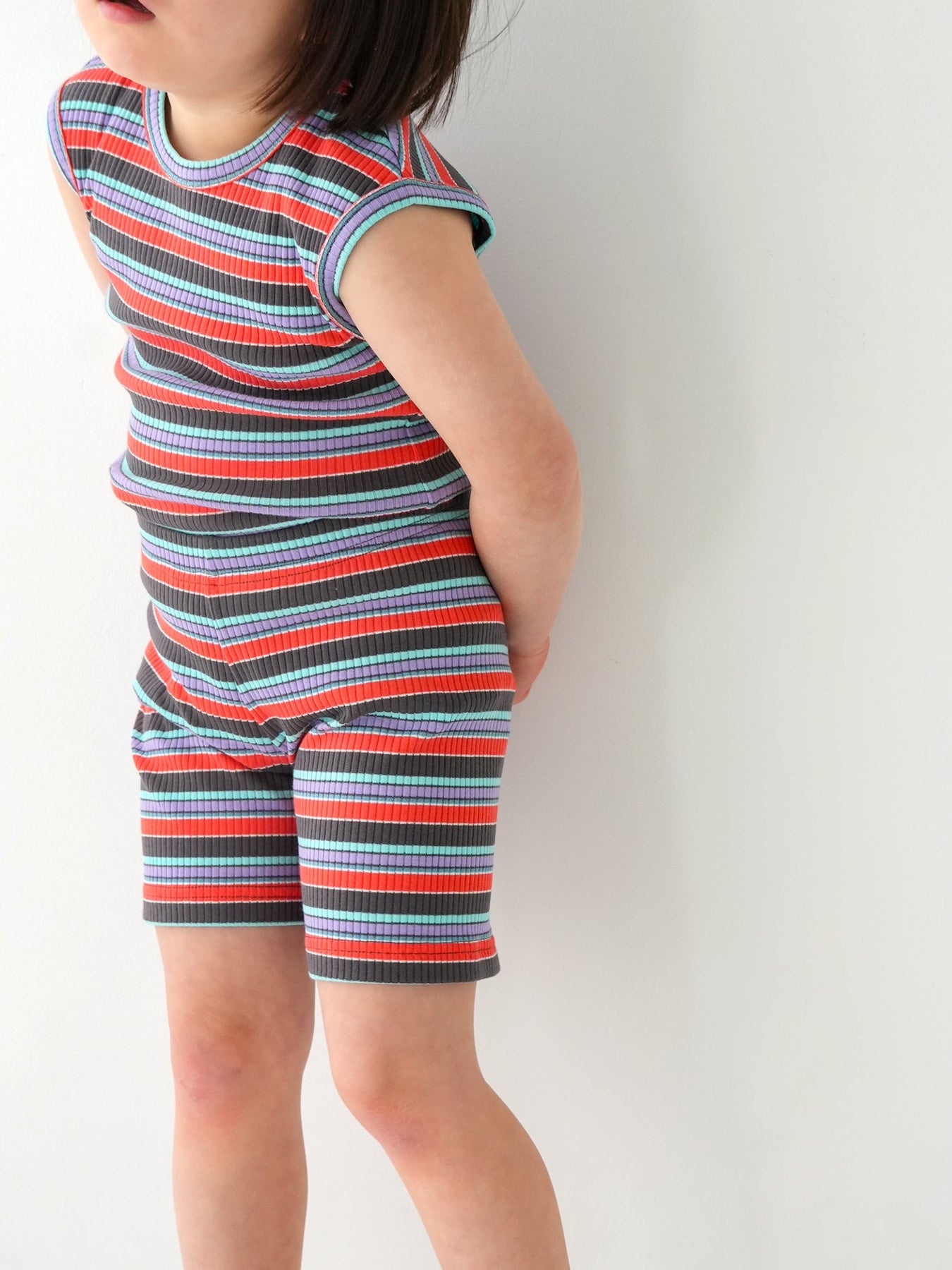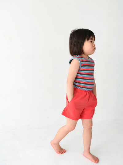 同素材のMulti Stripe Shortsとセットアップでの着こなしもおすすめ。夏のお出かけやリゾートスタイルにぴったりです。もちろん、デニムやショーツなどとの相性も良く、着回し力の高いアイテムとして活躍してくれます。
