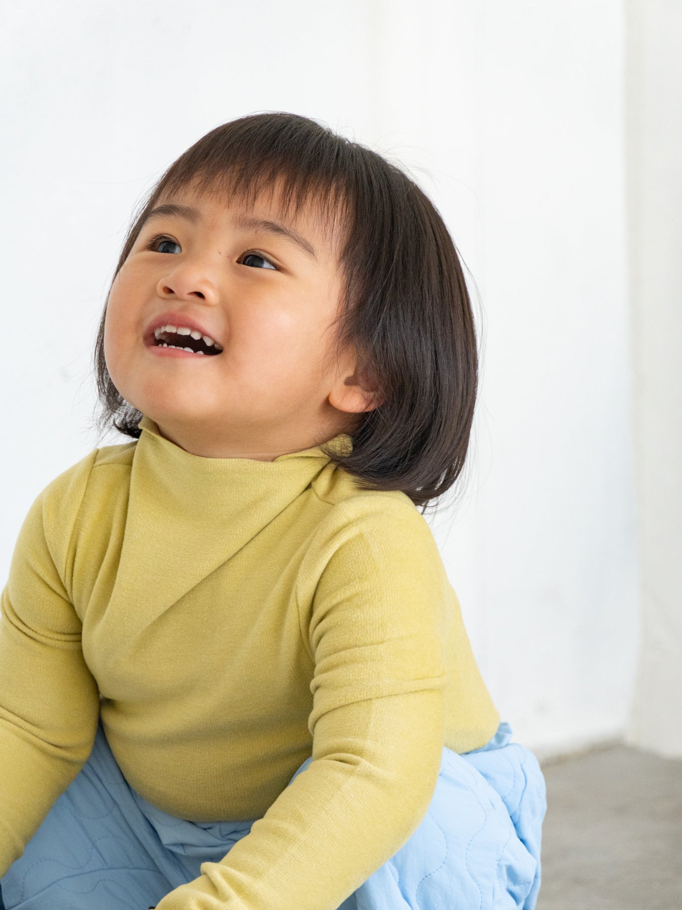 絶妙な高さのハイネックは、暑がりなお子さまでも快適。