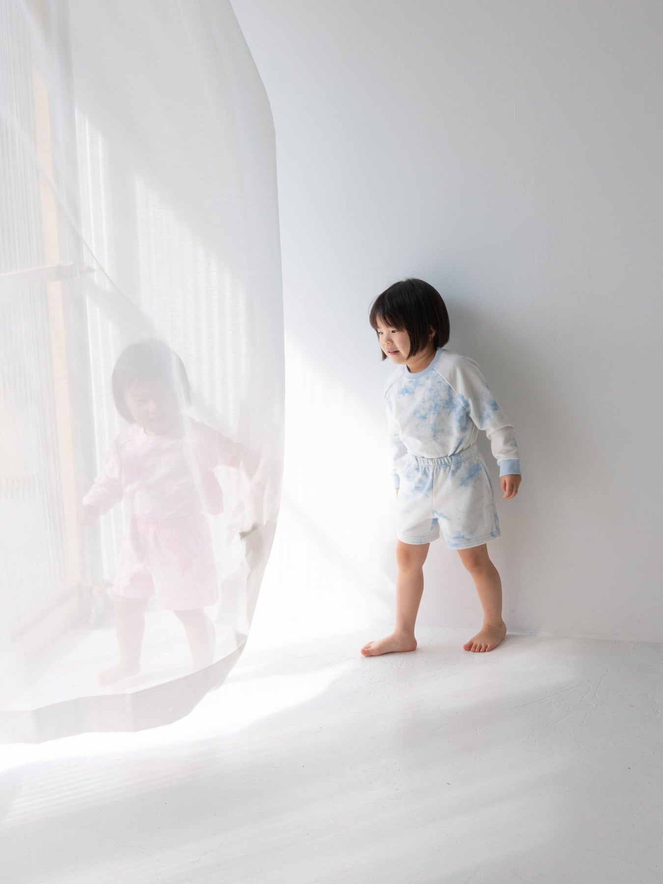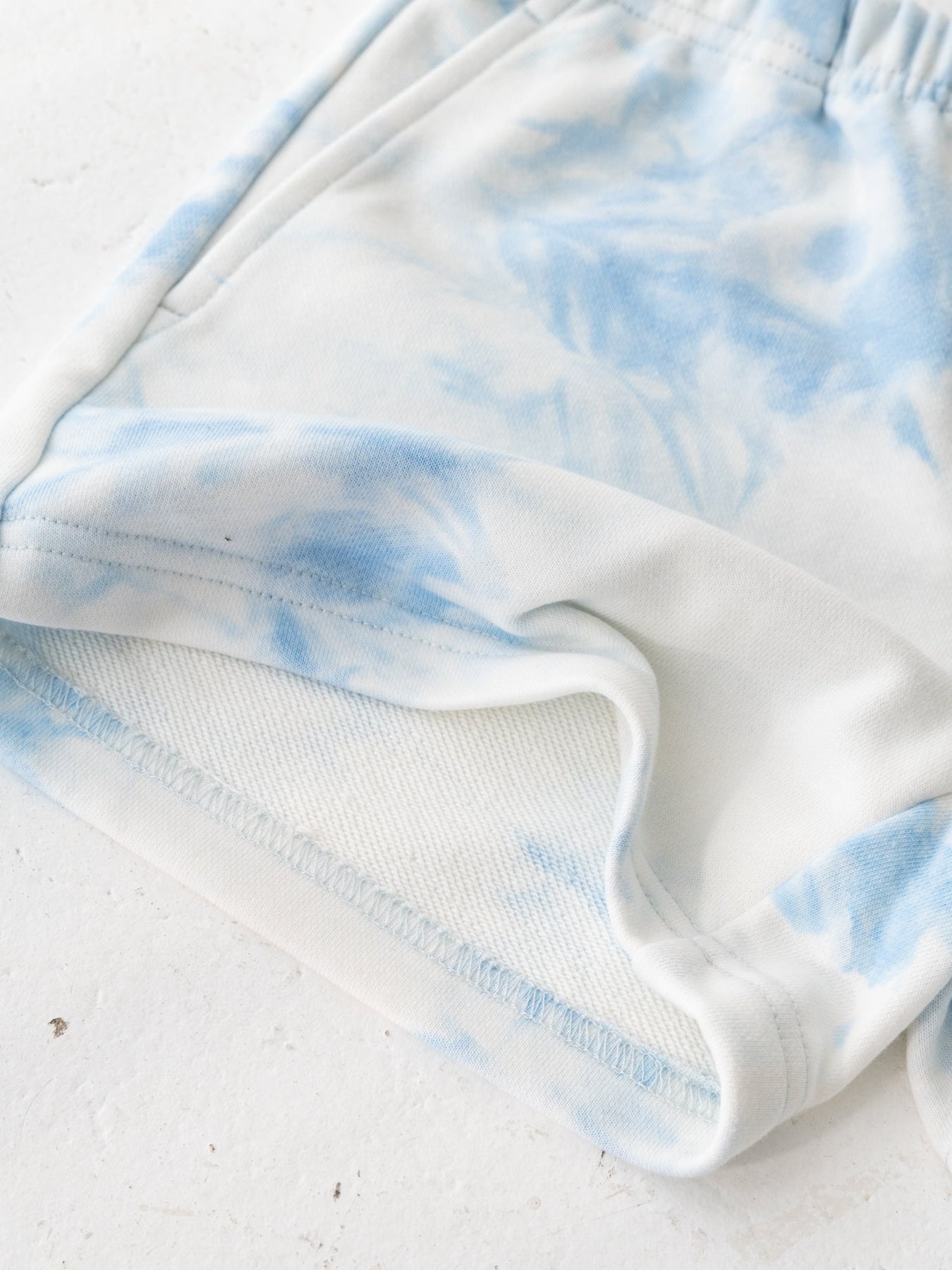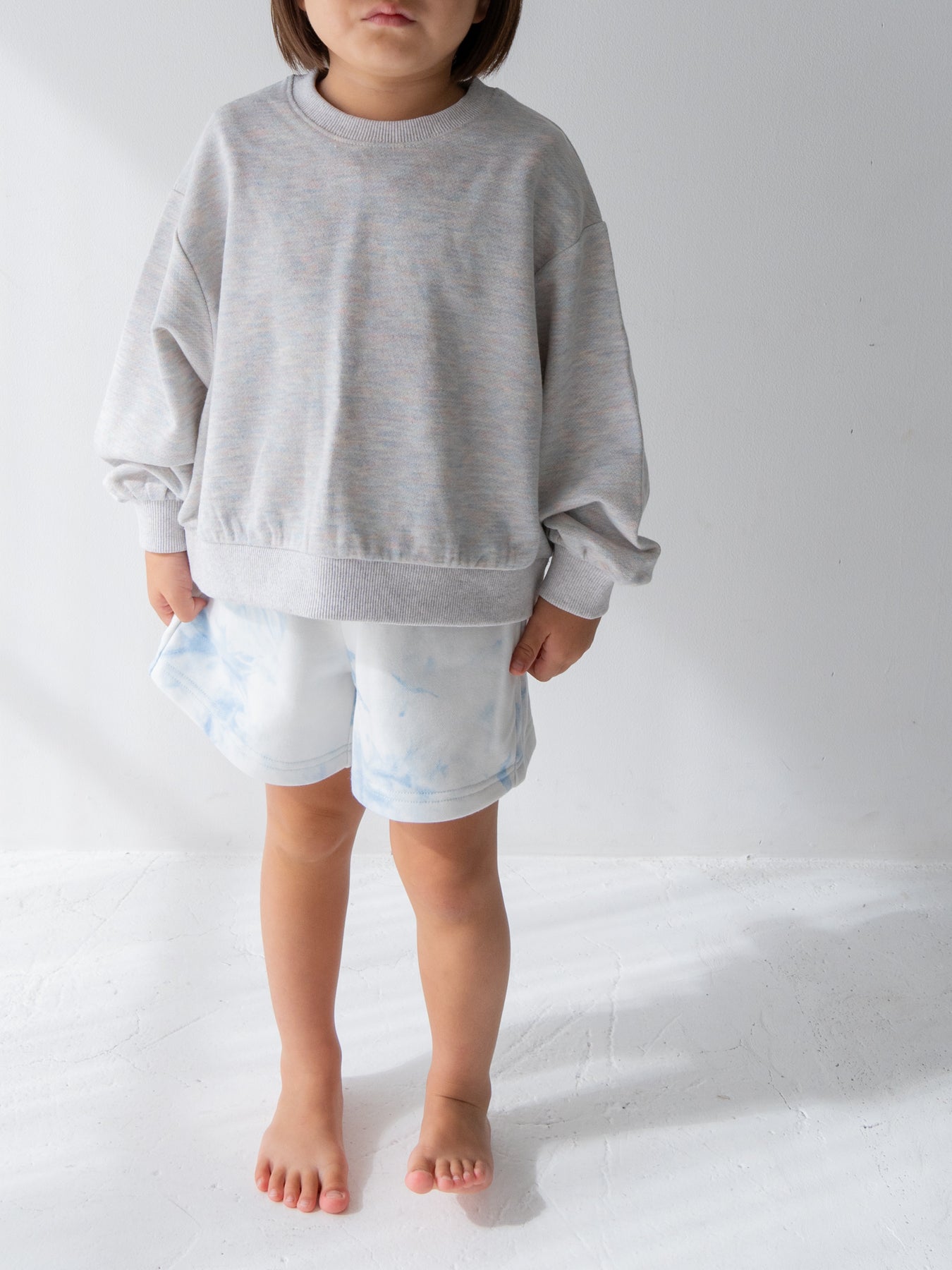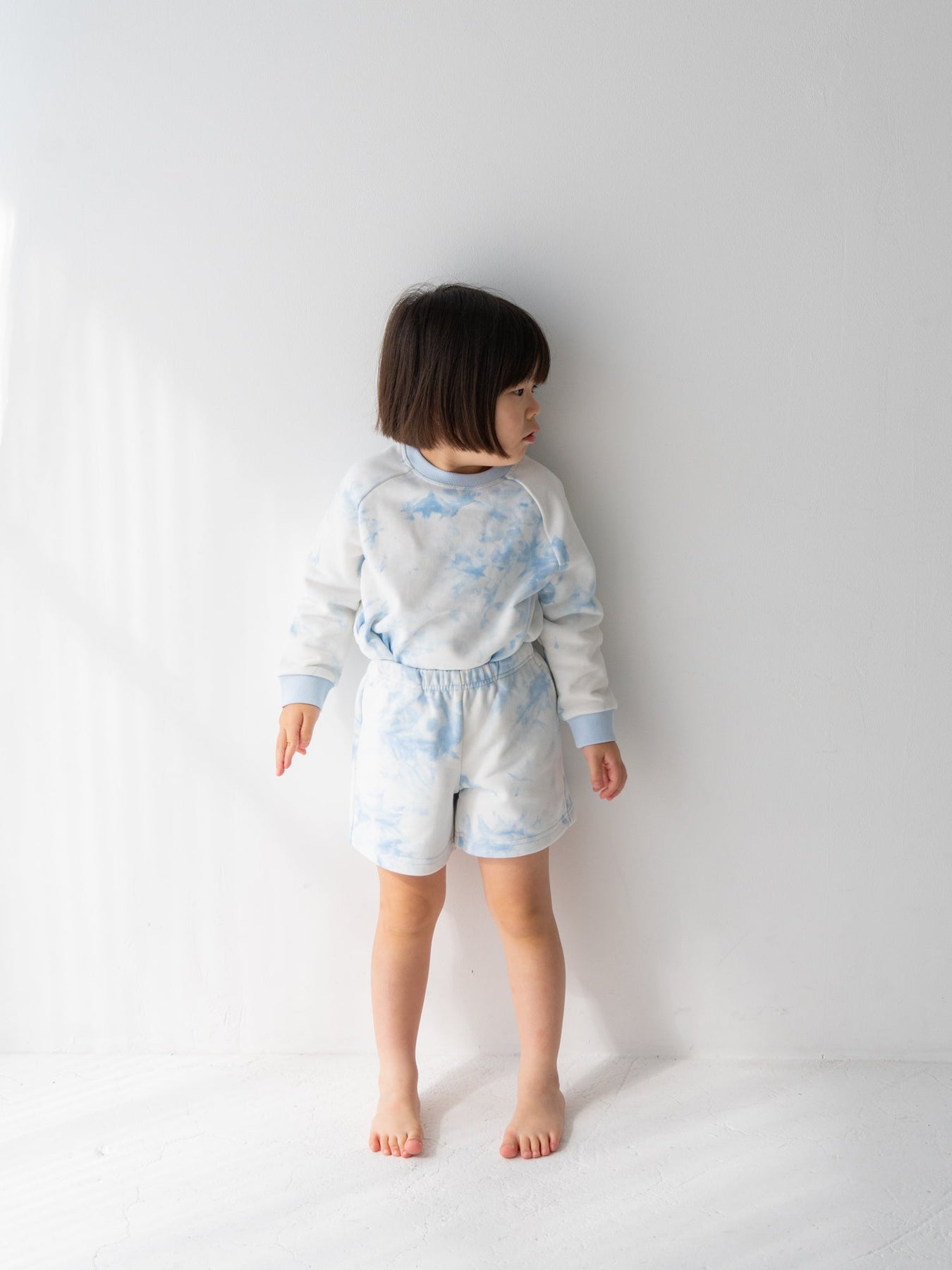 まるで水彩画のようにふんわりとしたタイダイ染めが印象的なスウェットショートパンツ。クセのないやさしいカラーリングで、コーディネートに自然となじむ一枚です。