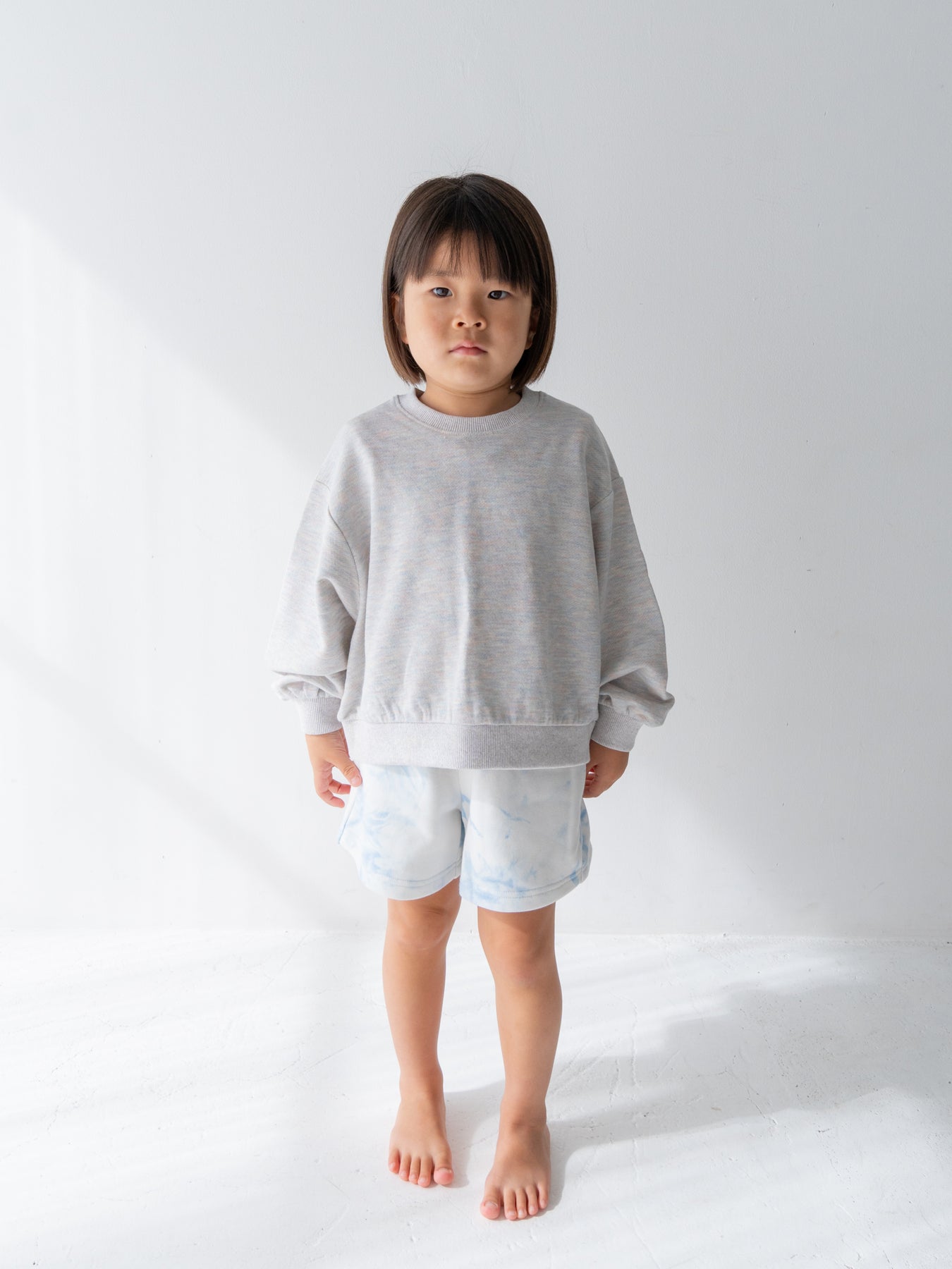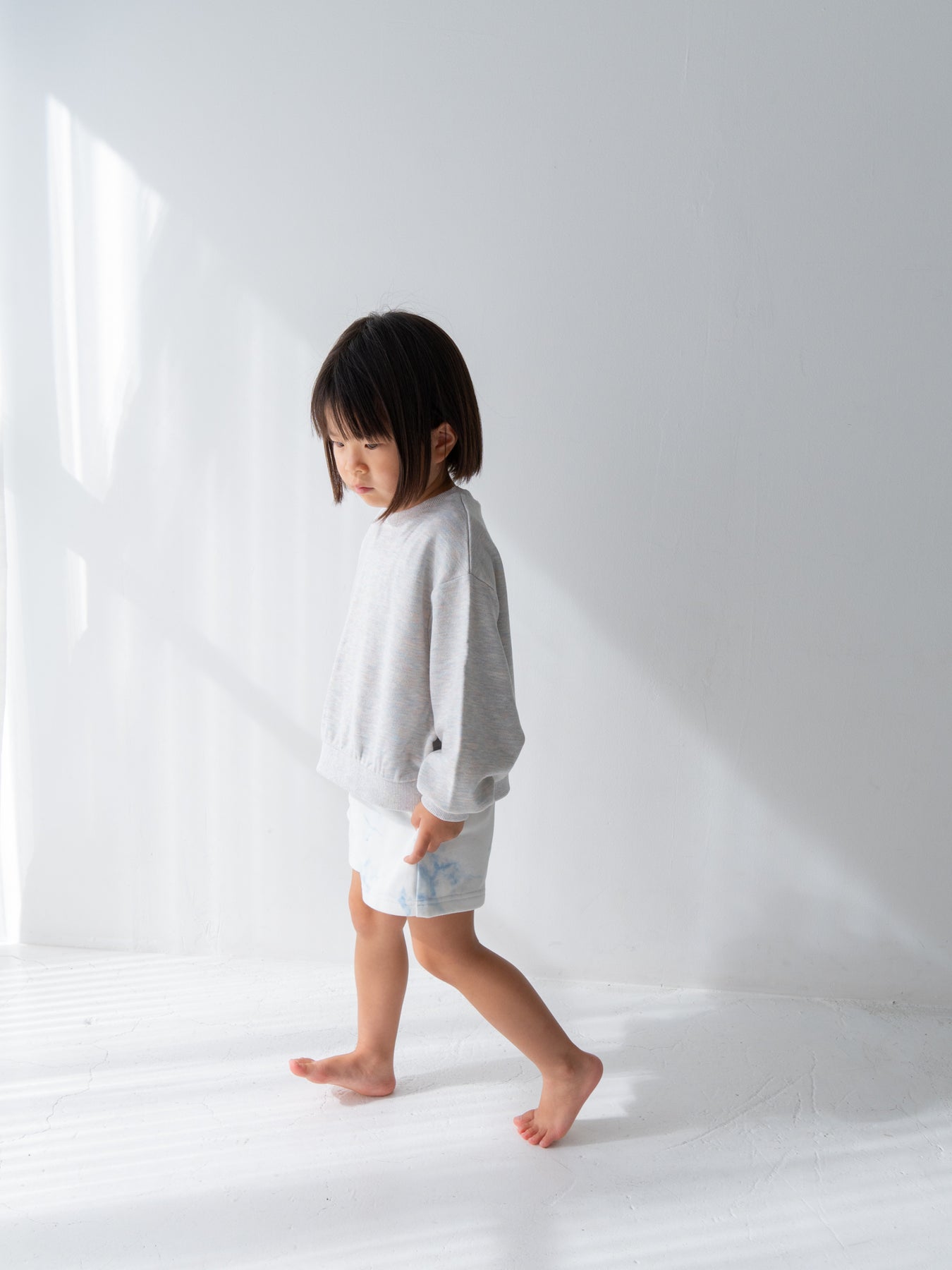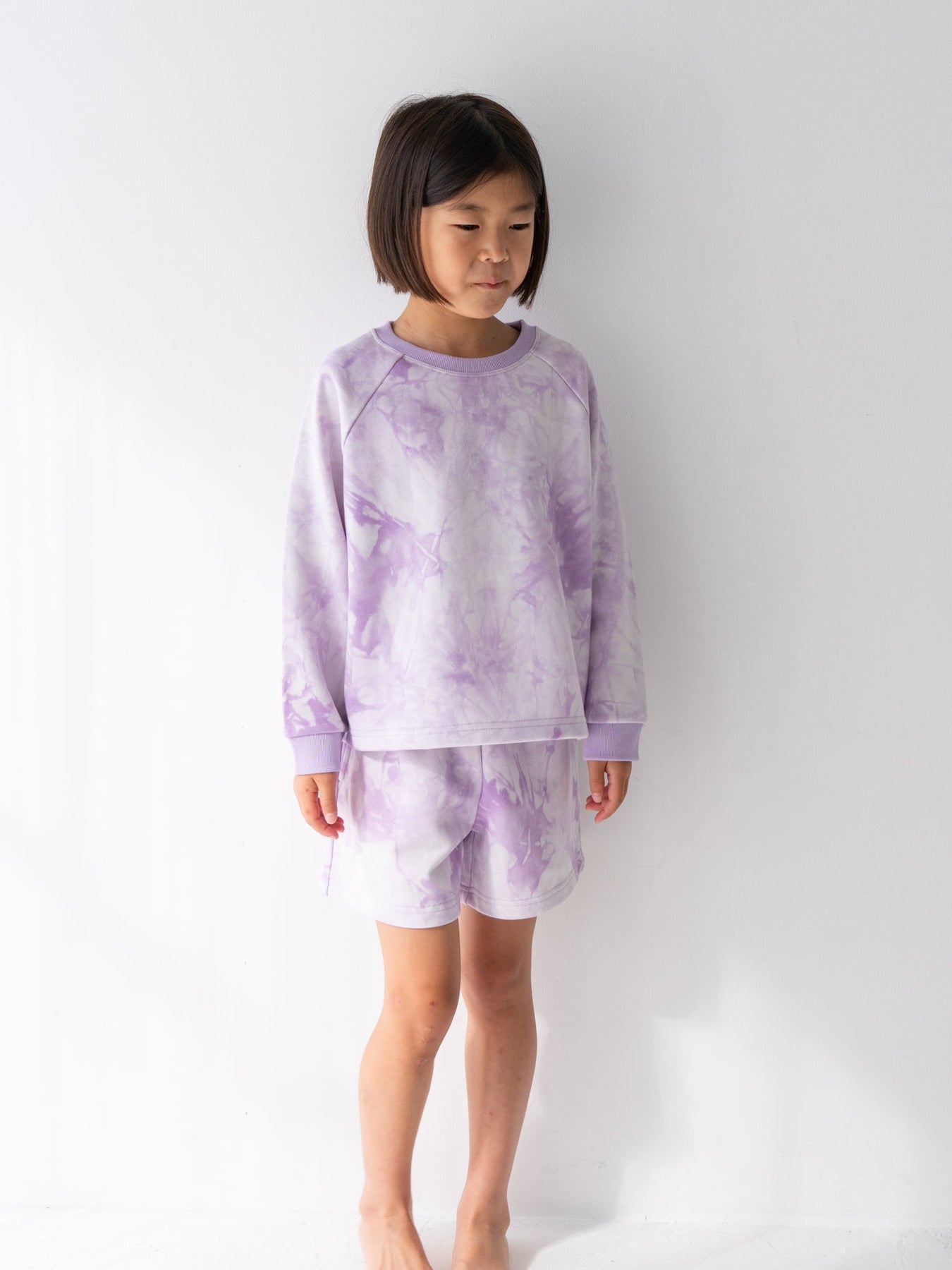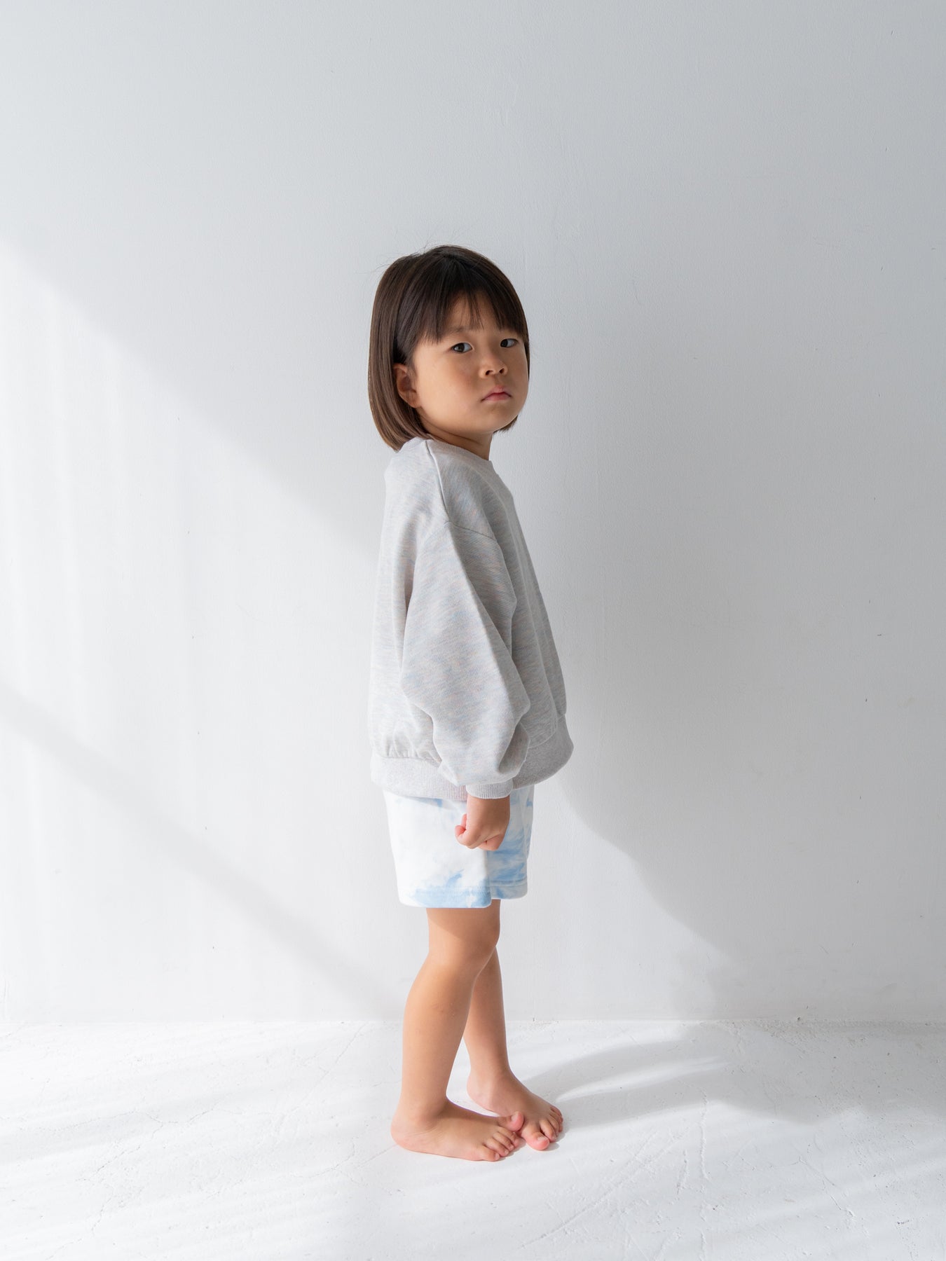 まるで水彩画のようにふんわりとしたタイダイ染めが印象的なスウェットショートパンツ。クセのないやさしいカラーリングで、コーディネートに自然となじむ一枚です。