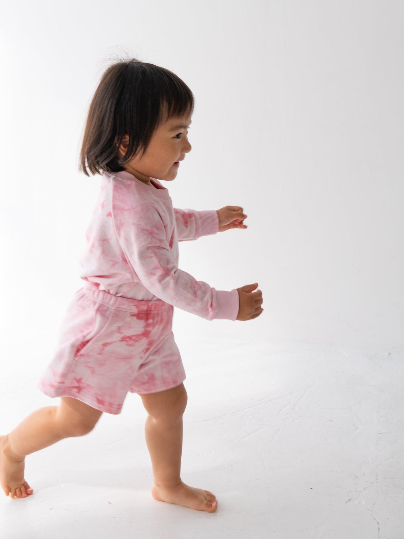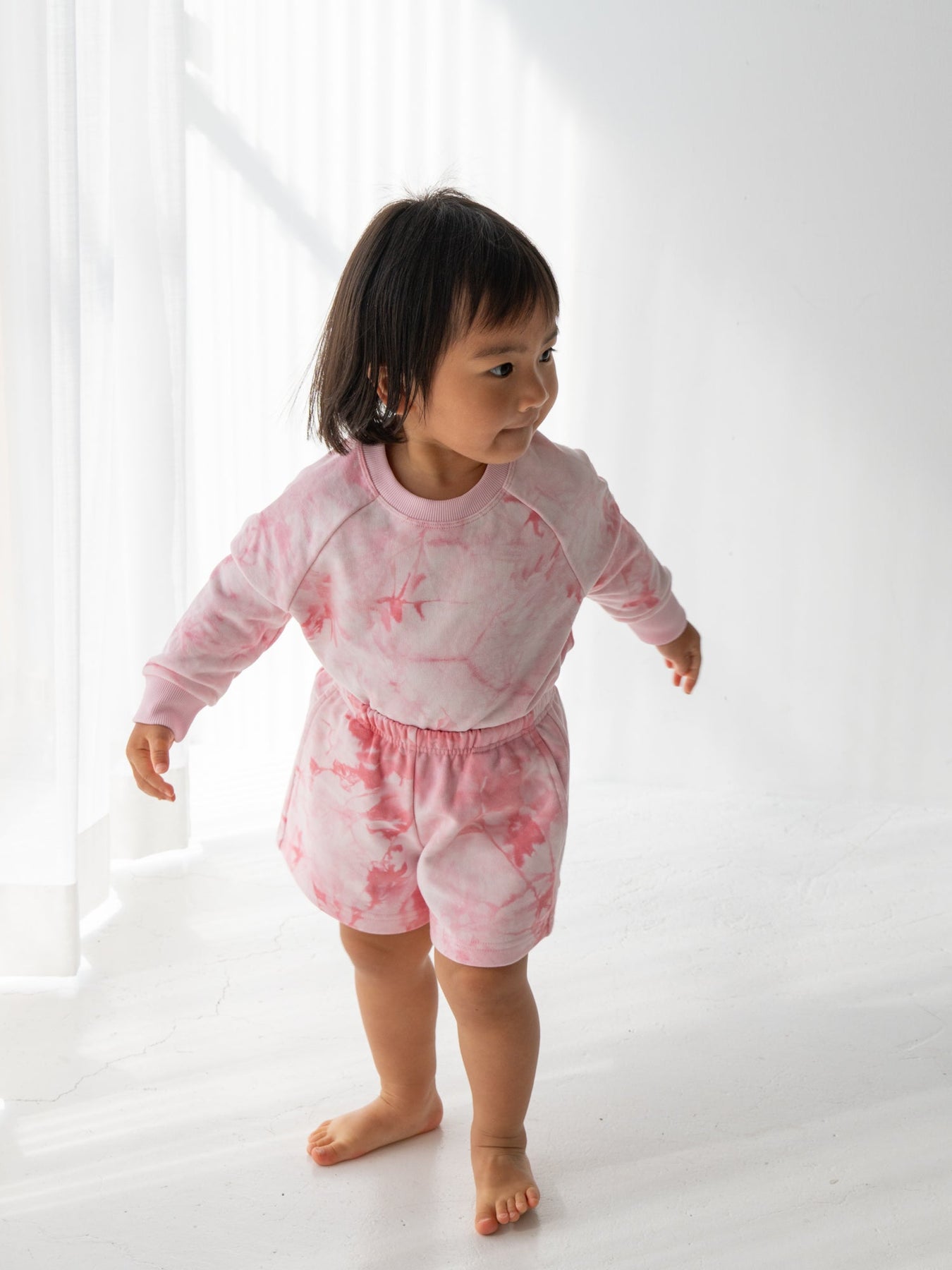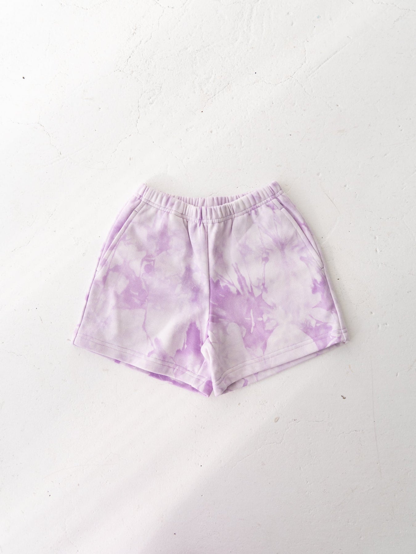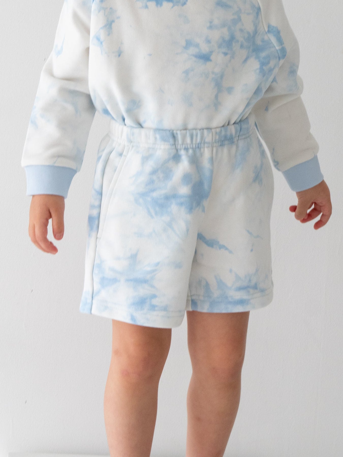 まるで水彩画のようにふんわりとしたタイダイ染めが印象的なスウェットショートパンツ。クセのないやさしいカラーリングで、コーディネートに自然となじむ一枚です。