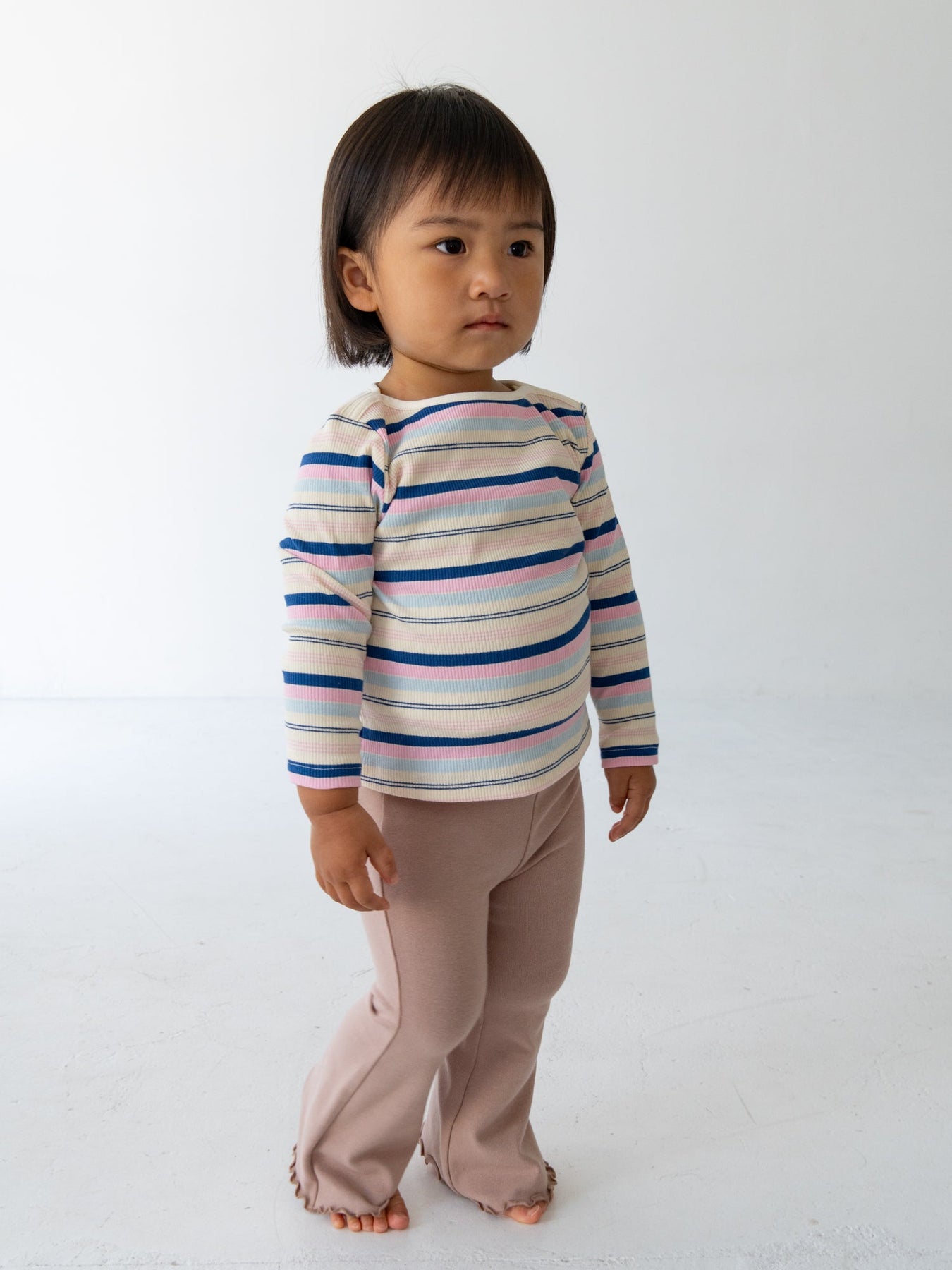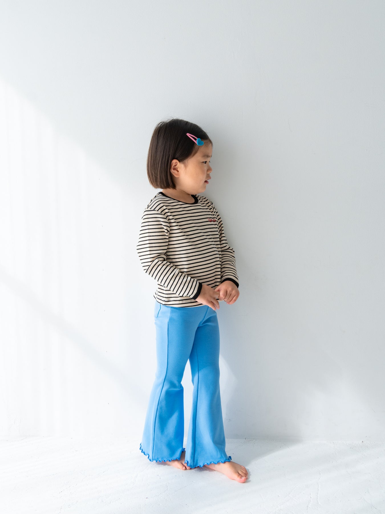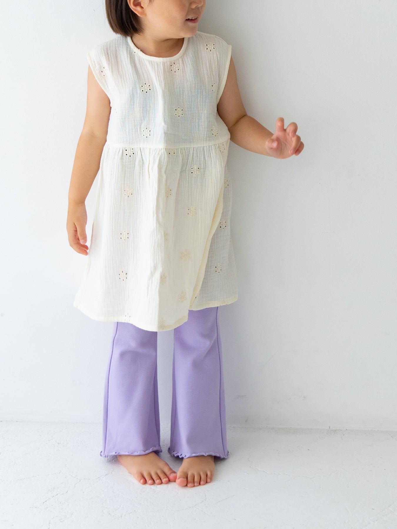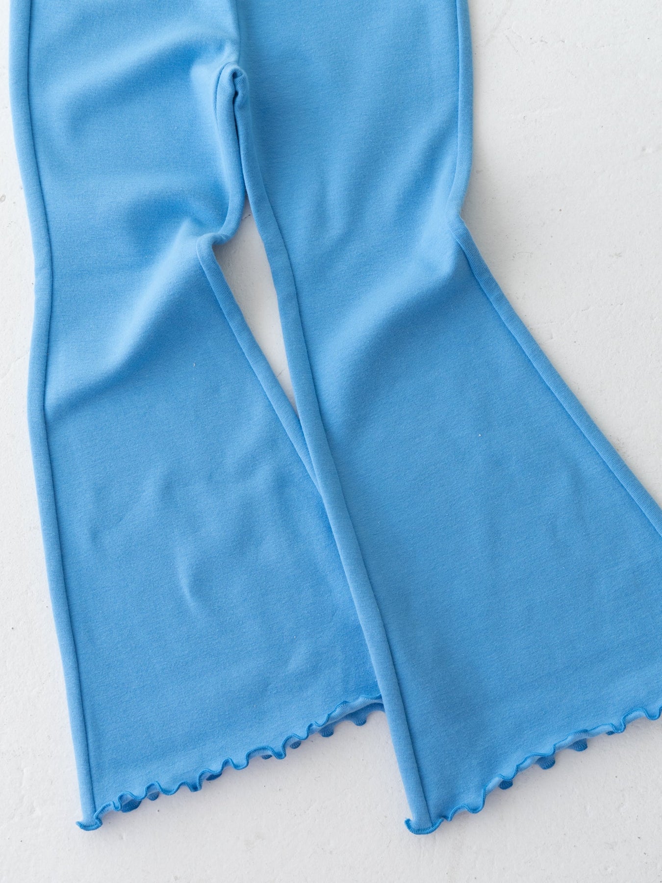 ゆるやかに広がるフレアシルエットと、裾のメロウ仕上げがほんのり華やかで、シンプルなのに存在感のある一本です。