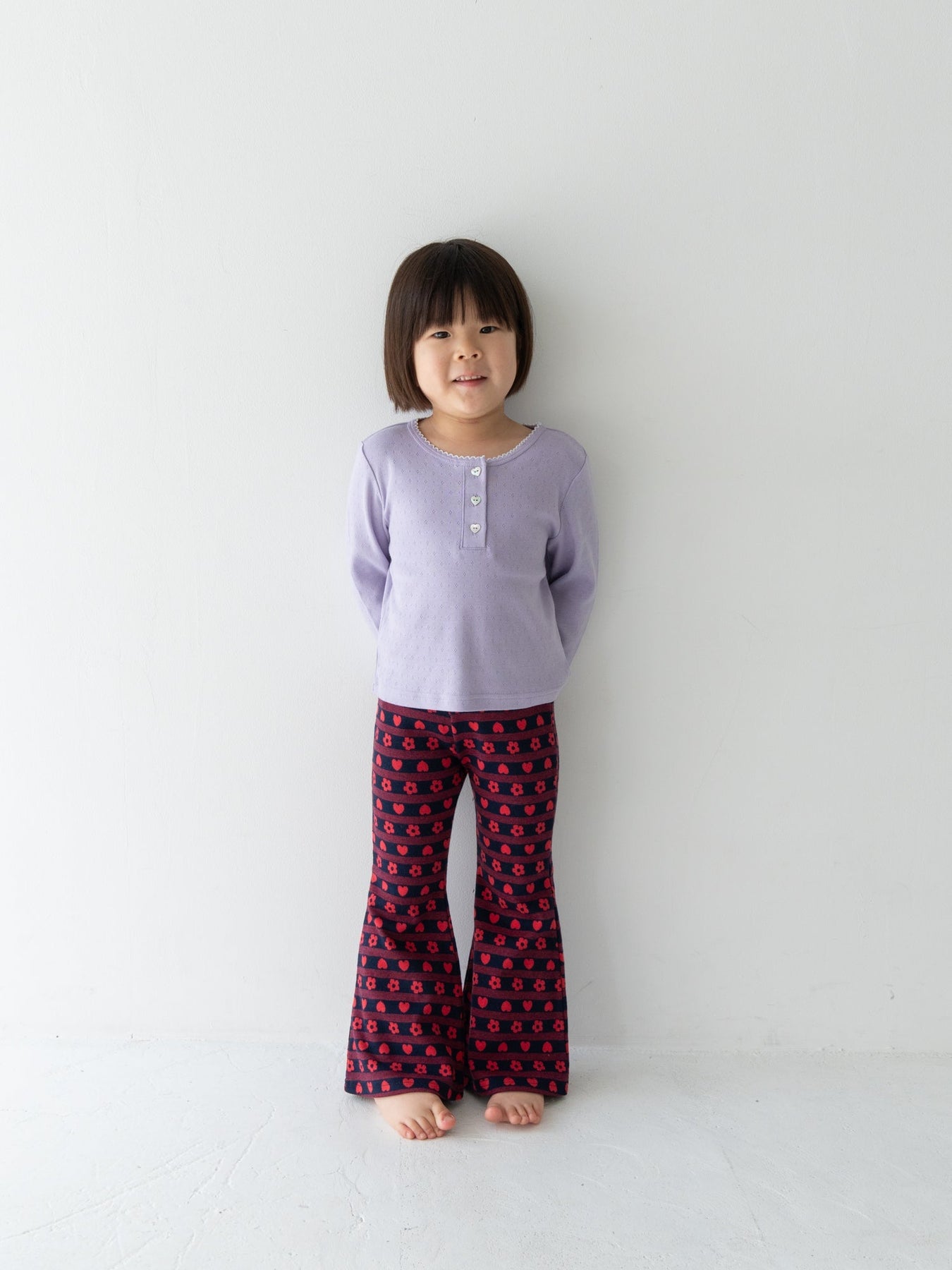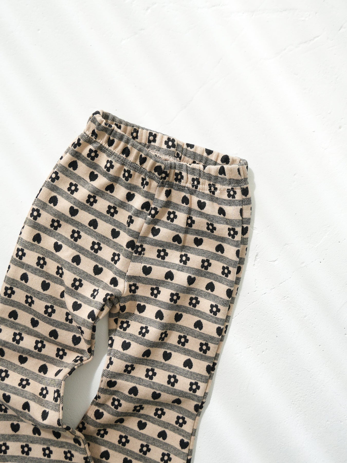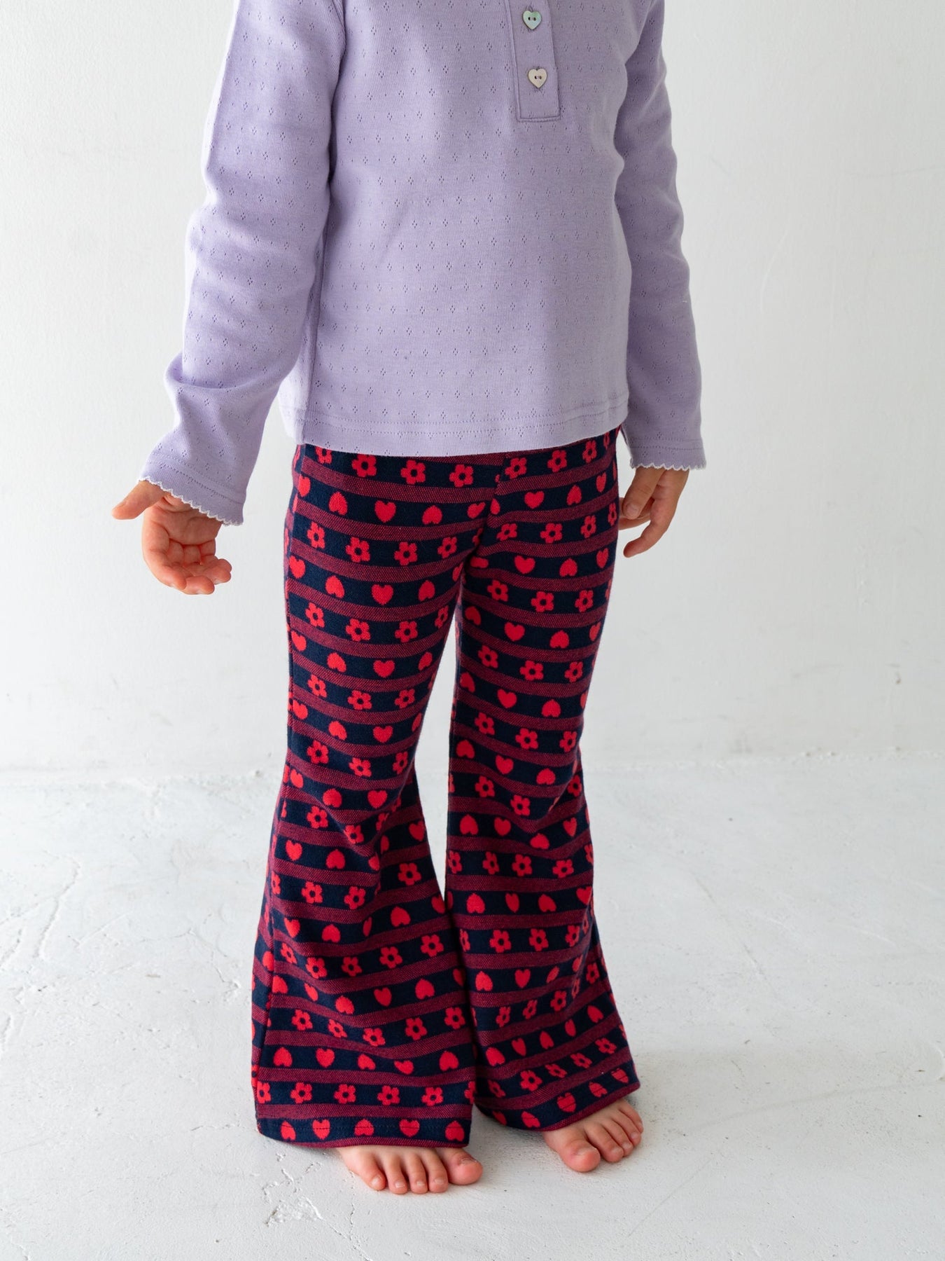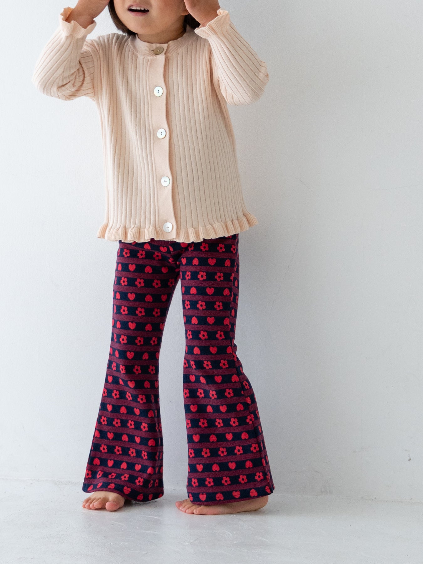 遊び心たっぷりのジャガードニットのフレアパンツ。