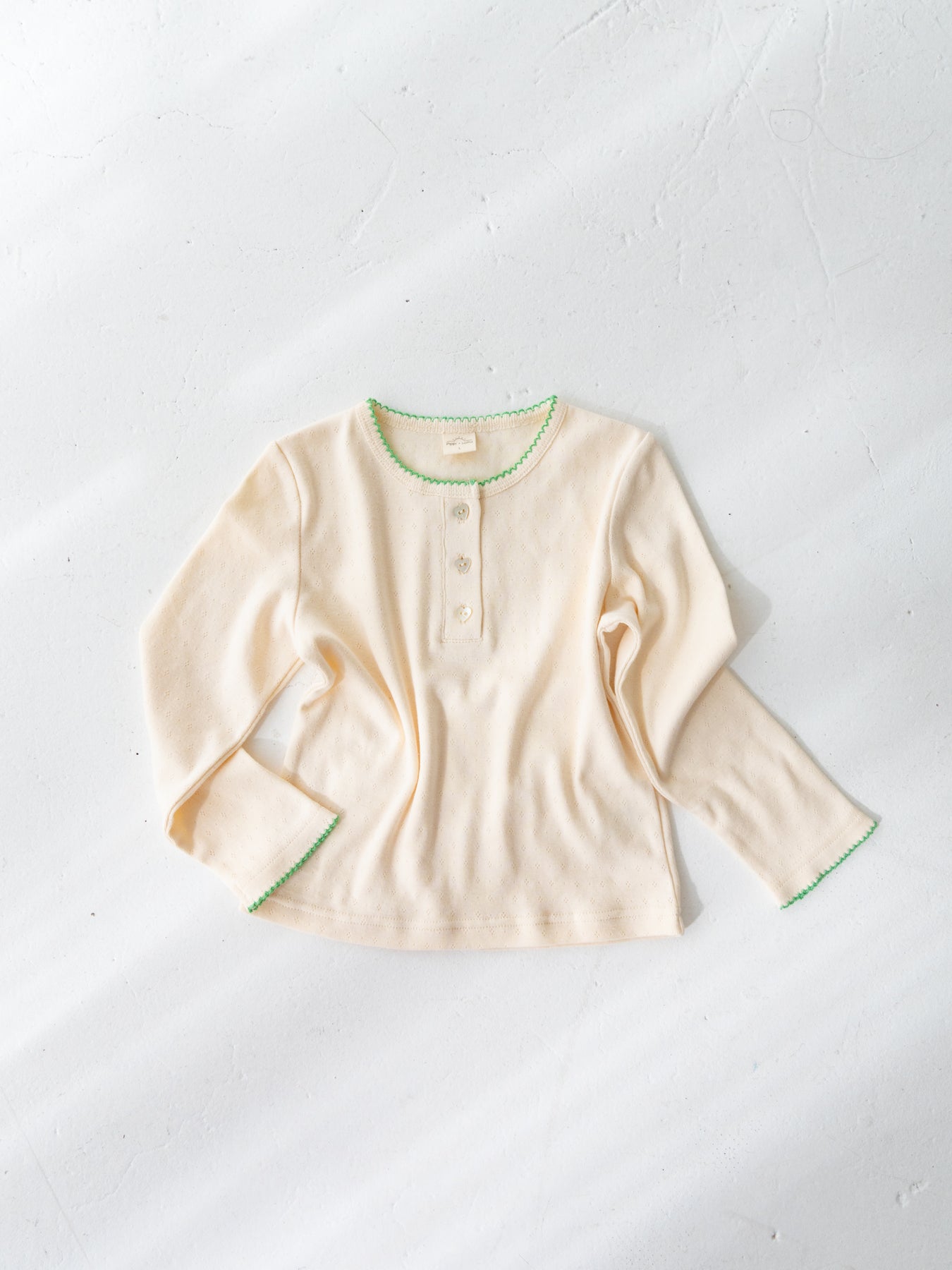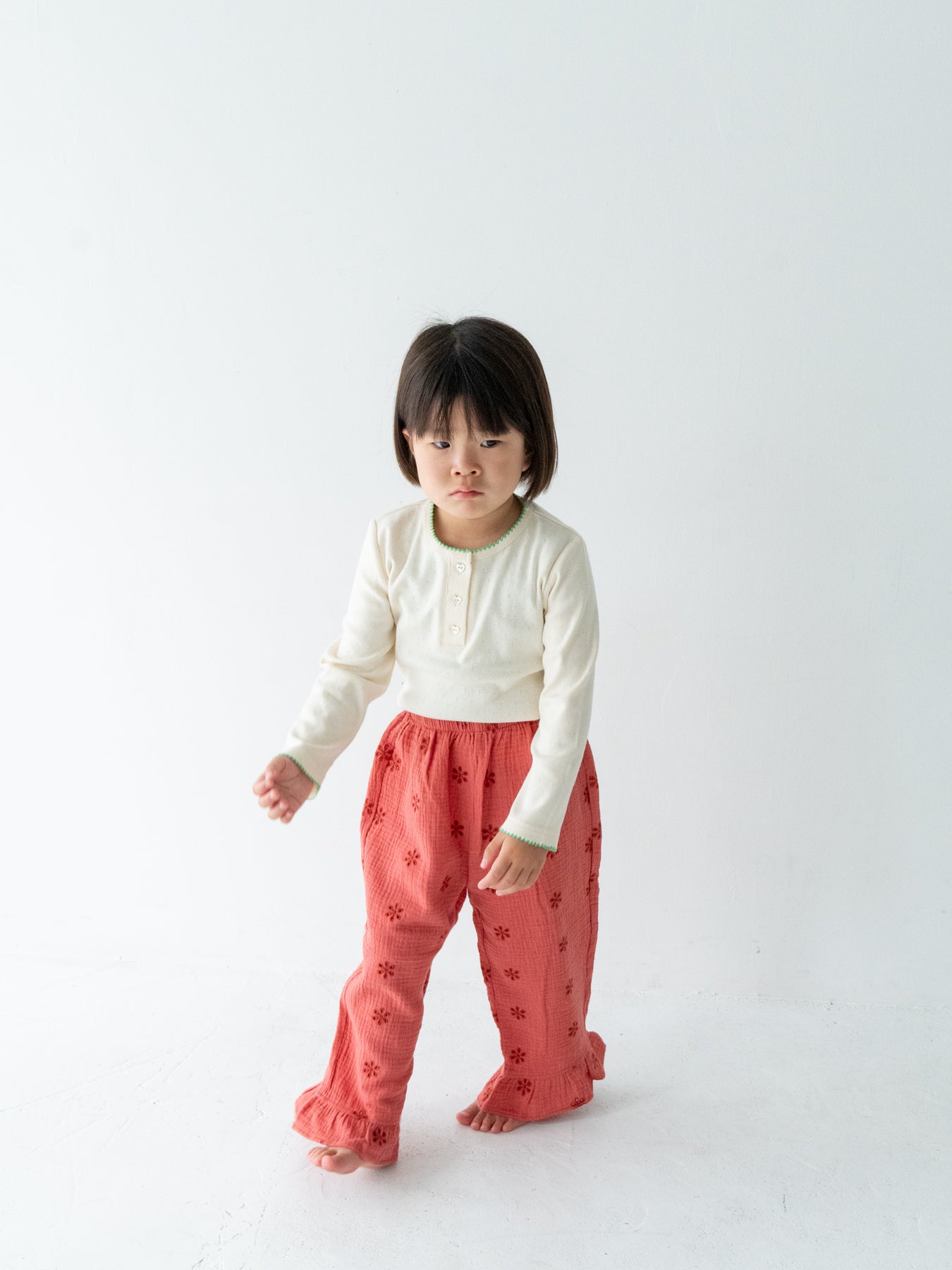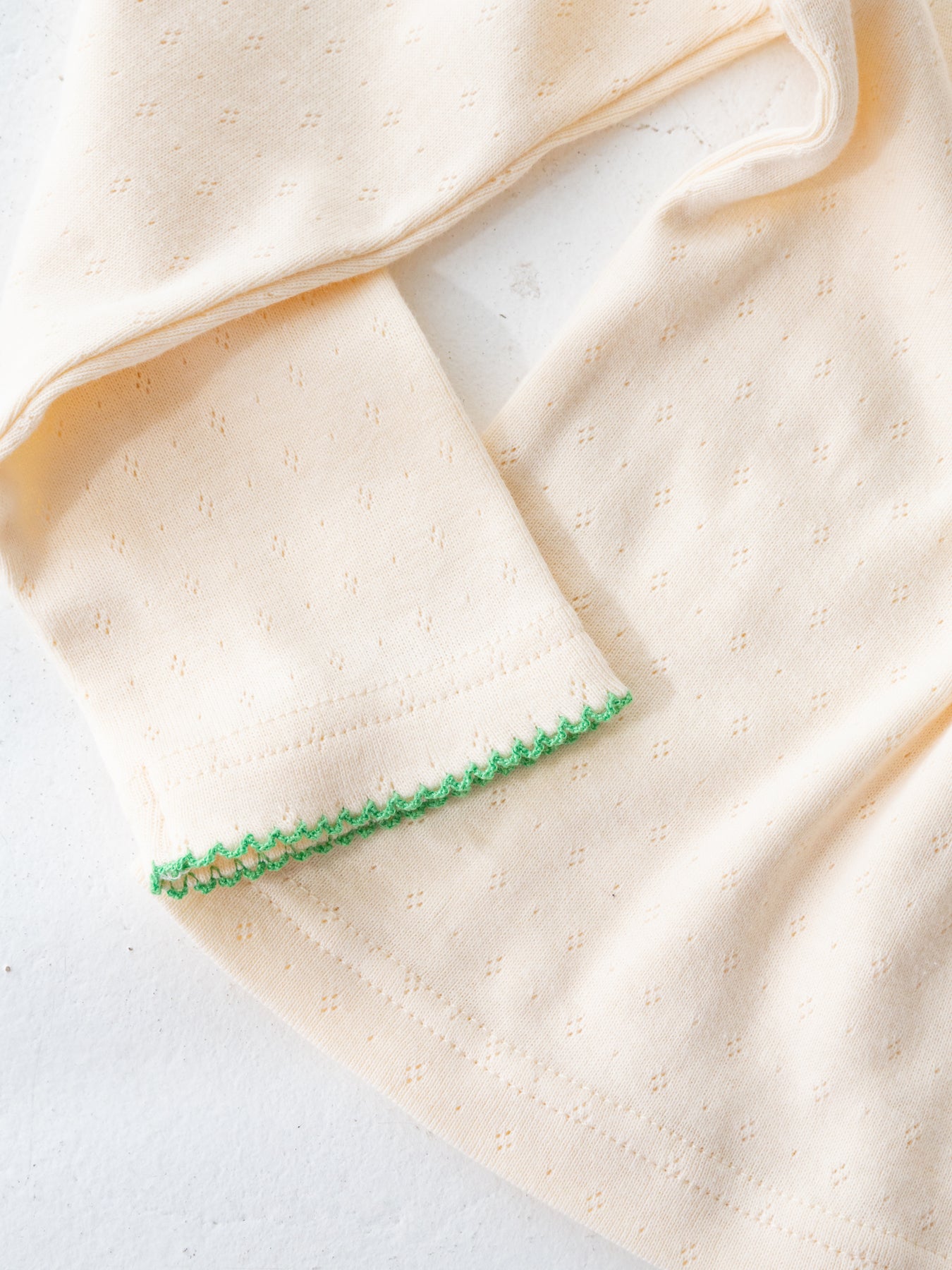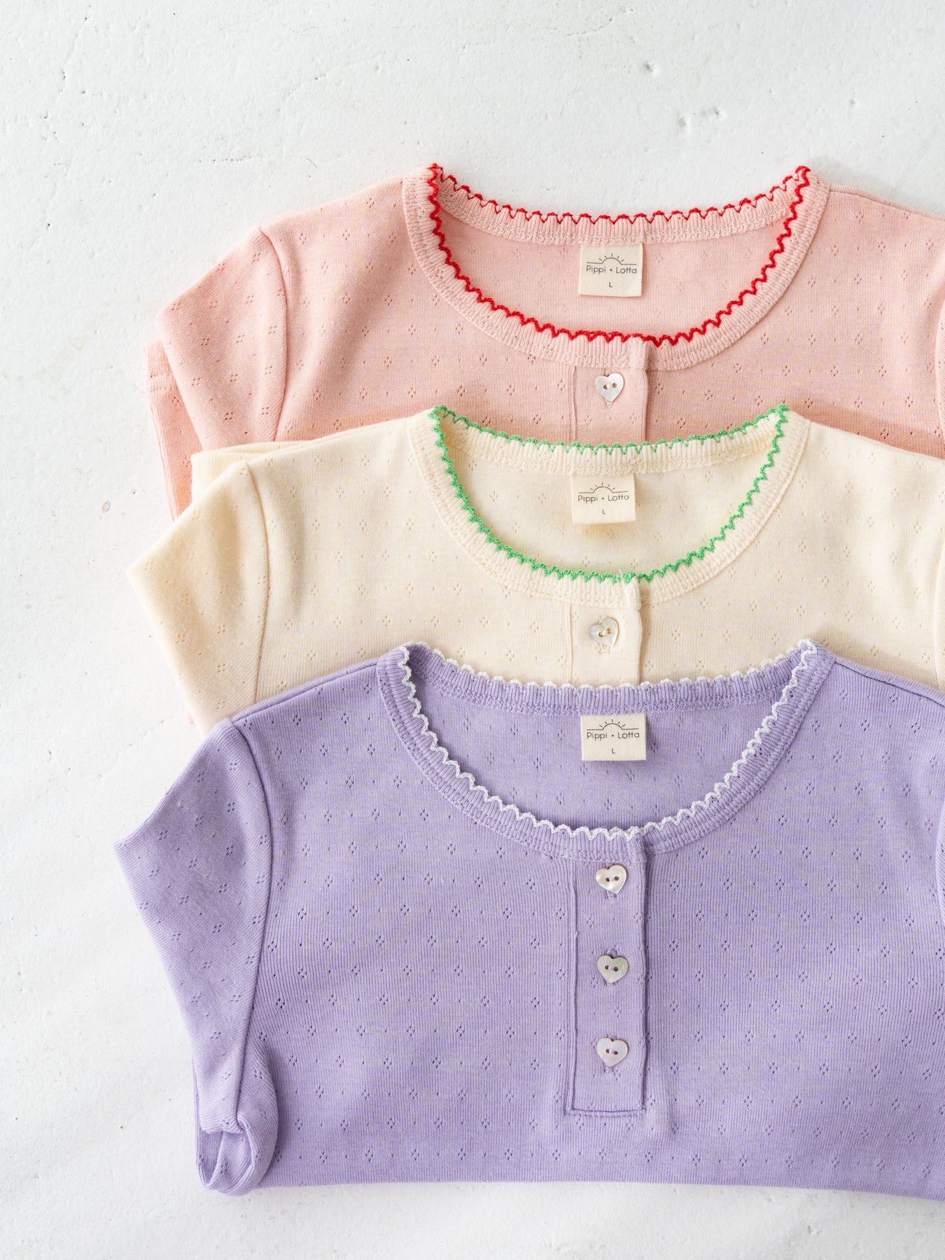 通気性に優れたアイレット生地は、軽やか、季節の変わり目にもインナーにもぴったりです。