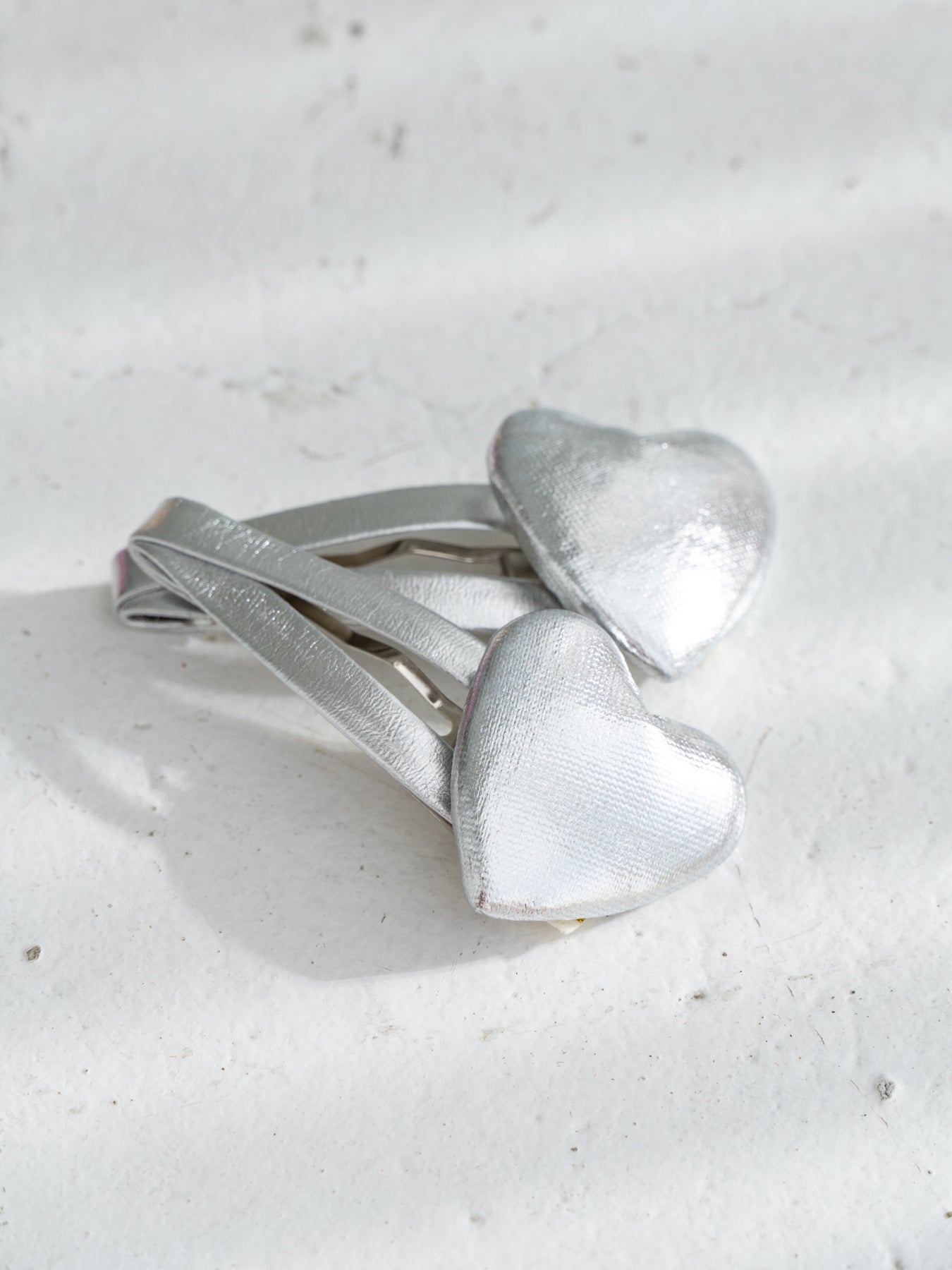 まるでチョコレートの包み紙のような、メタリックな質感が可愛いハートのヘアピン。