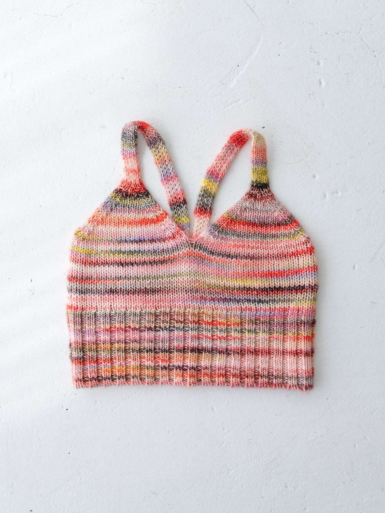 さまざまなカラーの毛糸が混ざり合って編まれた、表情豊かなマーブルニットのキャミソール。